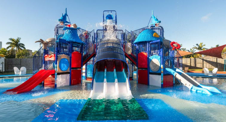 First up is Oaks Sunshine Coast Oasis Resort. Our waterpark ** keeps the kids entertained while you grab a cocktail poolside (genius planning, right?).